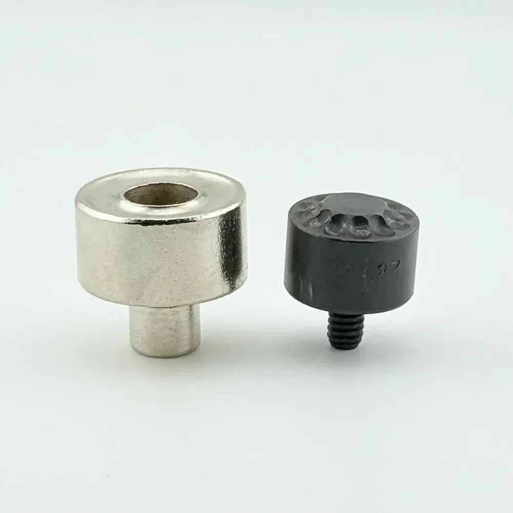 При установке блочки/люверса он разрезается с тыльной стороны, на равные части, что значительно снижает приложенные усилия, которые производятся при установке и ускоряют сам процесс запрессовки люверса ! Также данная насадка используется для установки люверсов в декоративных целях!